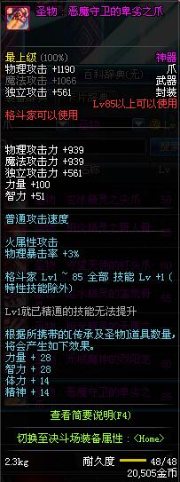 | 85 | 圣物 : 恶魔守卫的卑劣之爪 | *Lv85~91普通地下城怪物掉落 | ||