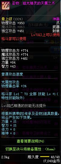 | 70 | 圣物 : 旭光精灵的天鹰之爪 | *Lv70~76普通地下城怪物掉落 |