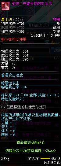 | 60 | 圣物 : 守望天使的钉头爪 | *Lv58~66普通地下城怪物掉落 |