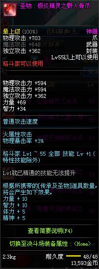 | 55 | 圣物 : 极炎精灵之野人骨爪 | *Lv53~61普通地下城怪物掉落 |