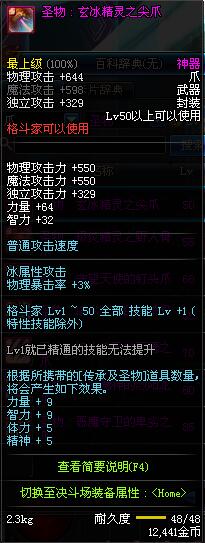 | 50 | 圣物 : 玄冰精灵之尖爪 | *Lv50~56普通地下城怪物掉落 |