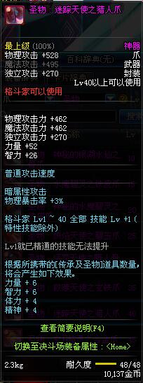 | 40 | 圣物 : 迷踪天使之猎人爪 | *Lv39~46普通地下城怪物掉落 |