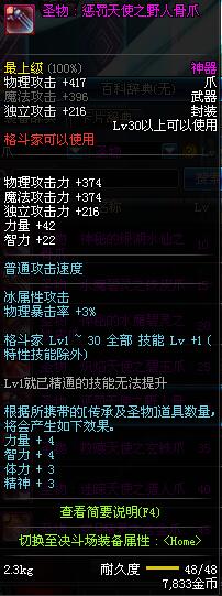 | 30 | 圣物 : 惩罚天使之野人骨爪 | *Lv29~36普通地下城怪物掉落 |