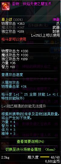| 25 | 圣物 : 炽焰天使之碧玉爪 | *Lv24~31普通地下城怪物掉落 | ||