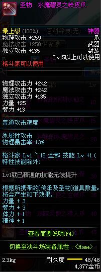 | 15 | 圣物 : 水魔碧灵之铁皮爪 | *Lv13~21普通地下城怪物掉落 |