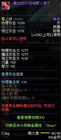 | 25 | (魔法封印)密制野人骨爪 | *Lv24~31普通地下城怪物掉落 *在NPC阿尔伯特·伯恩斯坦的物品店购买 *完成[帝国的险恶用心]任务 *使用Lv24~31怪物掉落的设计图进行制作 |