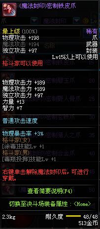 | 15 | (魔法封印)密制铁皮爪 | *Lv13~21普通地下城怪物掉落 *完成[专职贺礼]任务 |