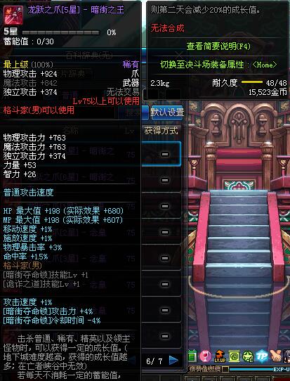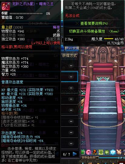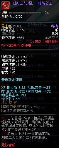 | 75 | 龙跃之爪[3星] - 暗街之王 | *完成二次觉醒任务后可以从NPC小铁柱处获得此道具。 | ||