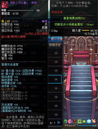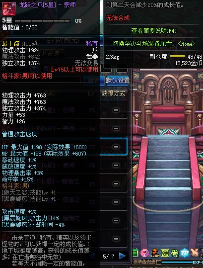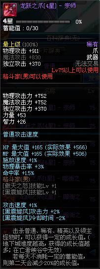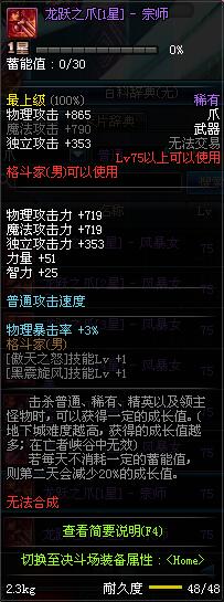 | 75 | 龙跃之爪[1星] - 宗师 | *完成二次觉醒任务后可以从NPC小铁柱处获得此道具。 | ||