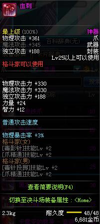| 20 | 血影爪 | *Lv19~26普通地下城怪物掉落 *在加百利的神秘商店购买 |