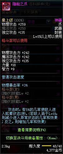 | 15 | 隐秘之爪 | *Lv13~21普通地下城怪物掉落 *在加百利的神秘商店购买 |