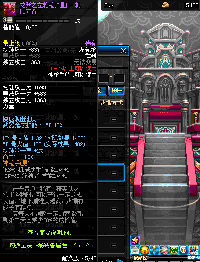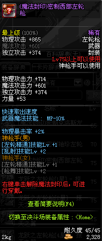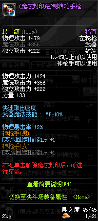 | 45 | (魔法封印)密制转轮手枪 | *Lv45~51普通地下城怪物掉落 *完成[罗斯特的破绽]任务 *使用Lv45~51怪物掉落的设计图进行制作 |