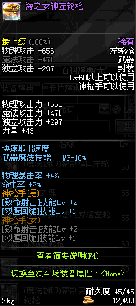 | 40 | 绝杀 - M1873 | *Lv39~46普通地下城怪物掉落 *在加百利的神秘商店购买 |
