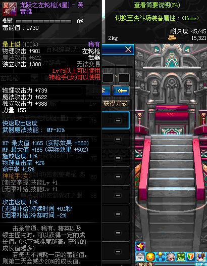 | 75 | 龙跃之左轮枪[2星] – 毁灭者 | *完成二次觉醒任务后可以从NPC小铁柱处获得此道具。 | ||