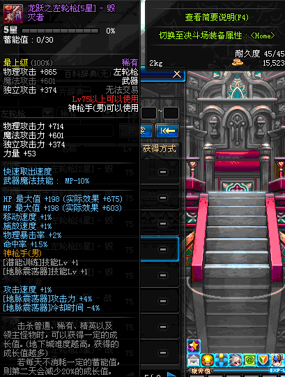 | 75 | 龙跃之左轮枪[3星] – 毁灭者 | *完成二次觉醒任务后可以从NPC小铁柱处获得此道具。 | ||