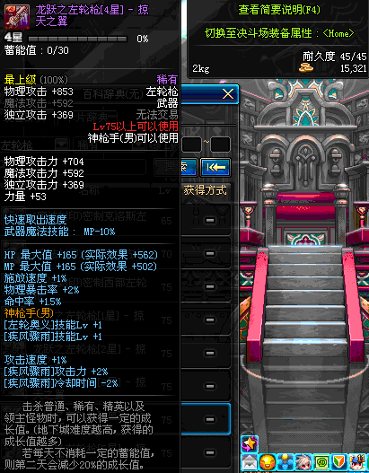 | 75 | 龙跃之左轮枪[4星] – 机械之灵 | *完成二次觉醒任务后可以从NPC小铁柱处获得此道具。 | ||