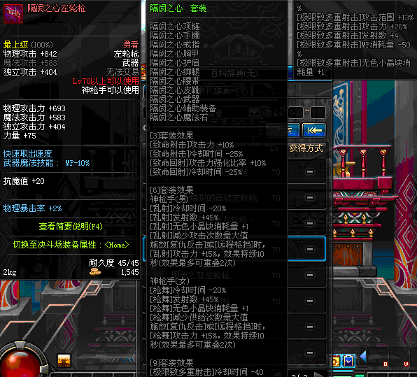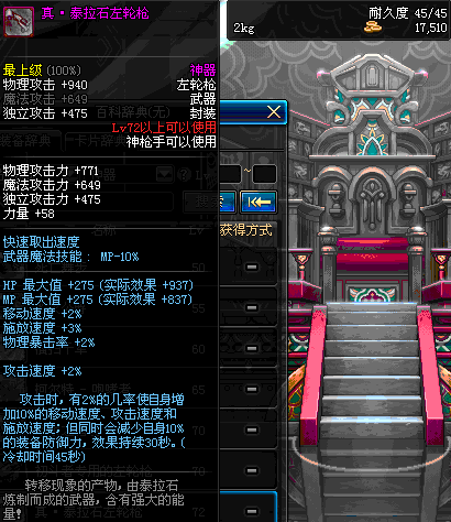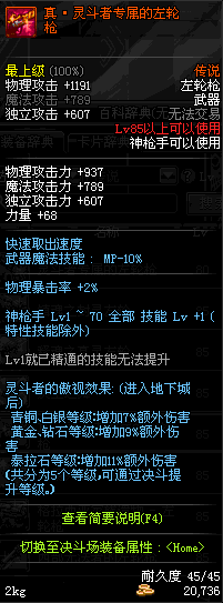 | 45 | 圣物 : 冥火精灵之转轮手枪 | *Lv45~51普通地下城怪物掉落 |