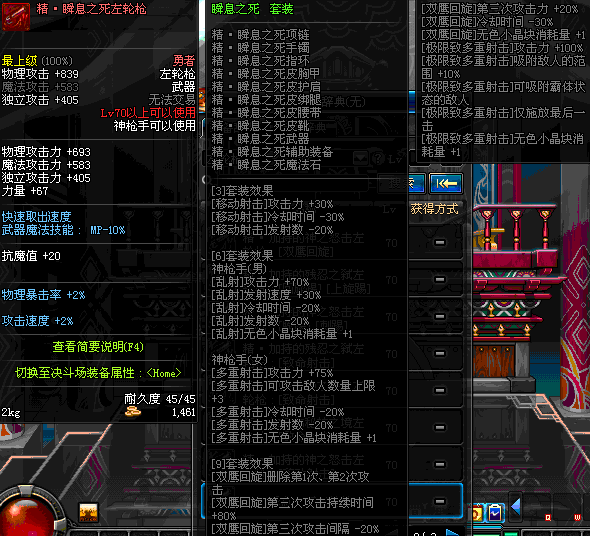 | 65 | 柯尔特 - 咆哮者 | *Lv65~71普通地下城怪物掉落 *在加百利的神秘商店购买 |