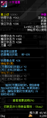 | 45 | 十字猎鹰 | *Lv45~51普通地下城怪物掉落 *在加百利的神秘商店购买 |