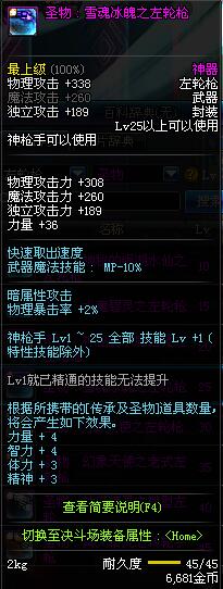 | 25 | 圣物 : 雪魂冰魄之左轮枪 | *Lv24~31普通地下城怪物掉落 | ||